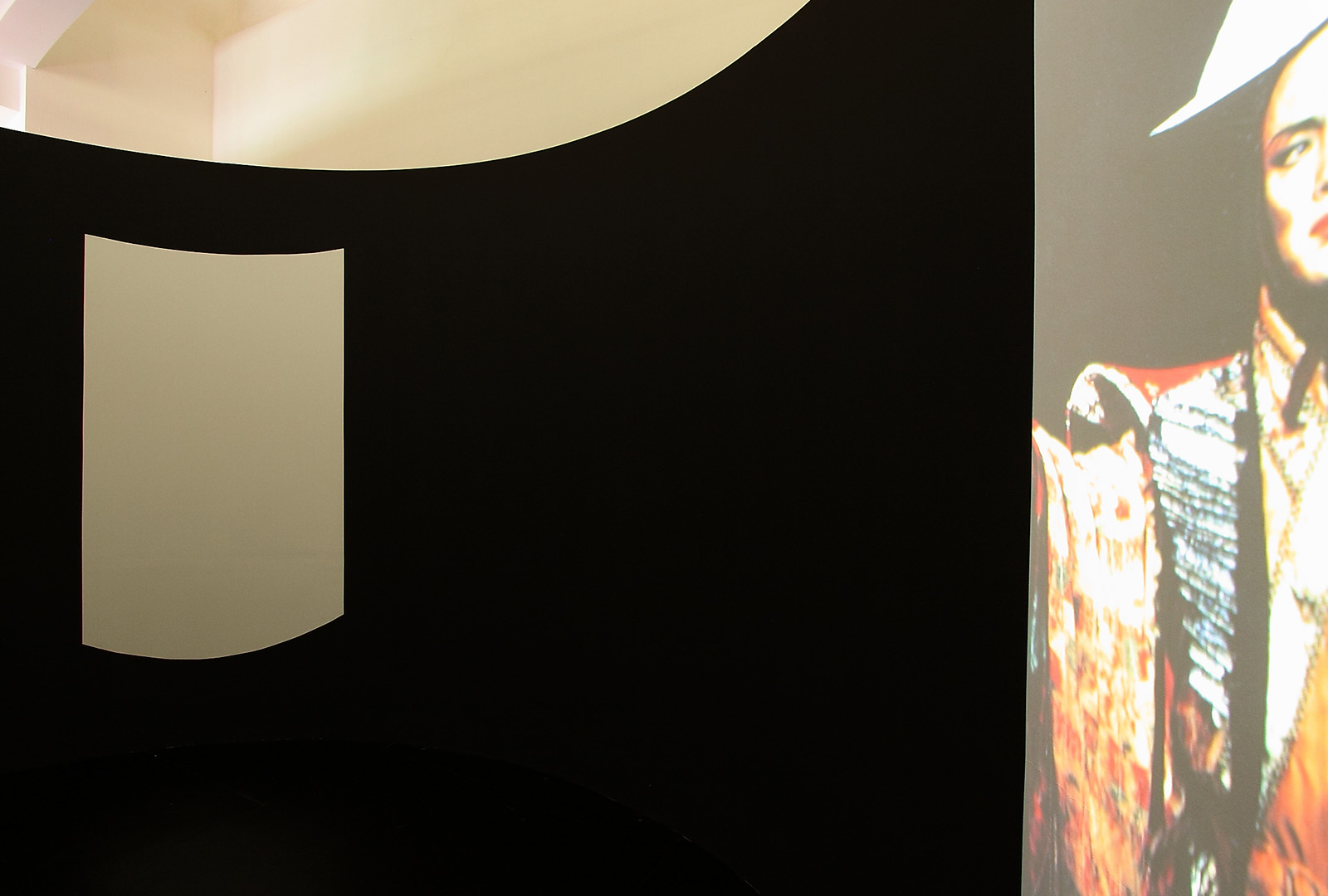 The exhibition unfolded across three connected tunnel-like zones—white, red, and black—categorising his oeuvre.